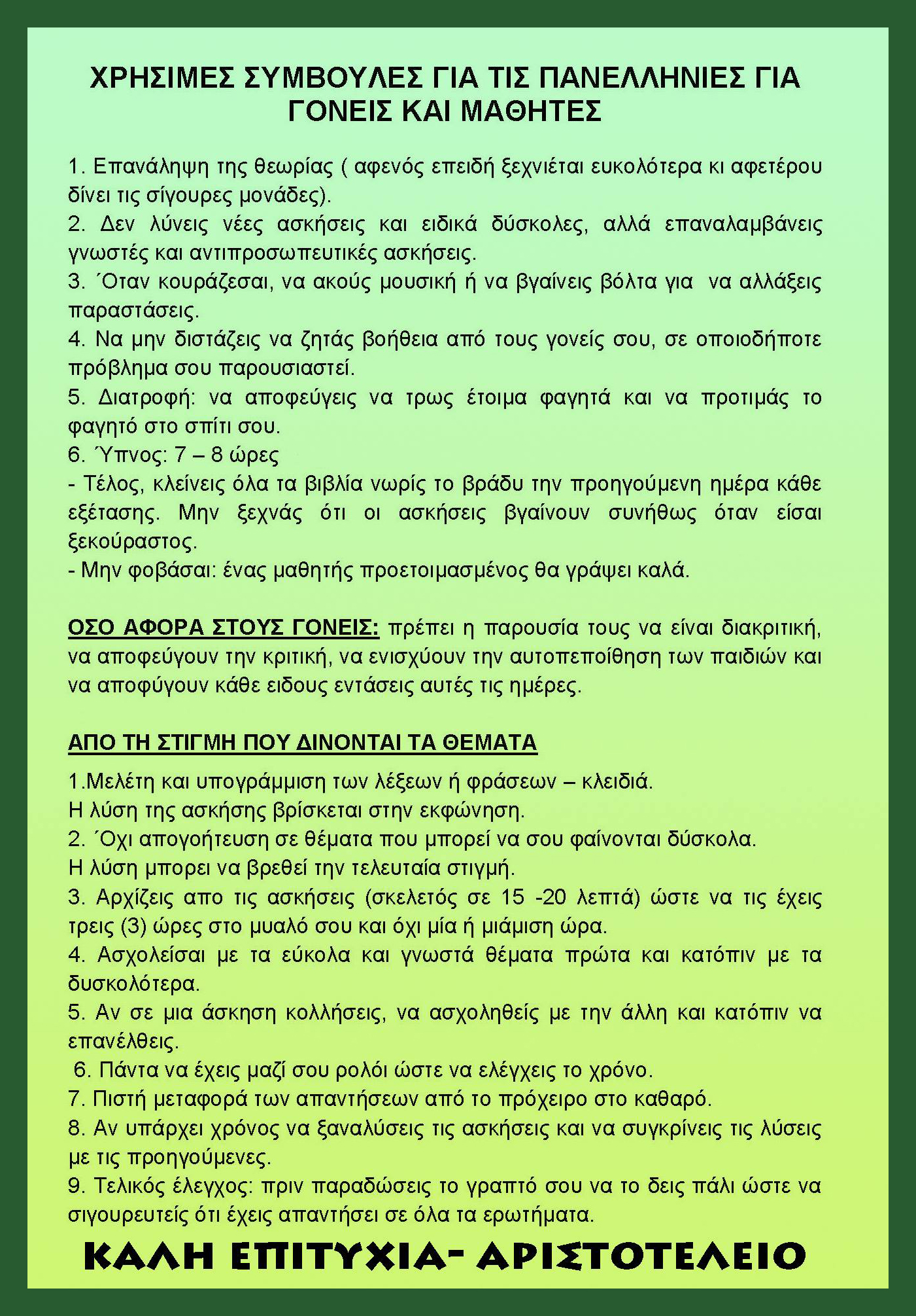 Χρήσιμες Συμβουλές για τις Πανελλήνιες