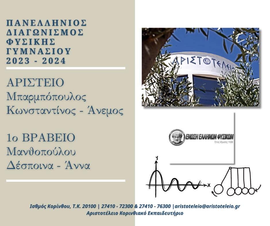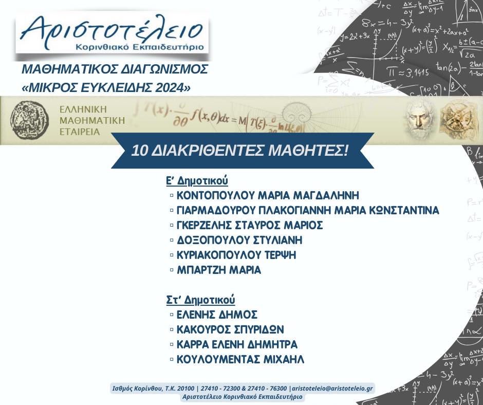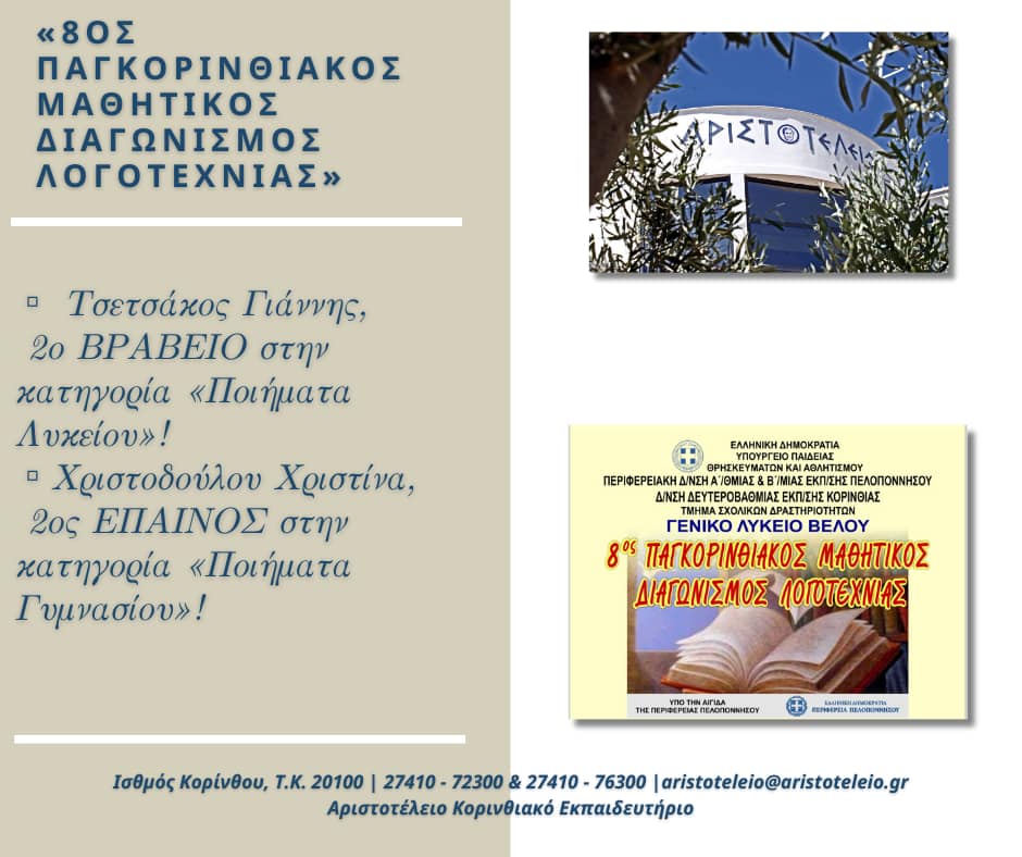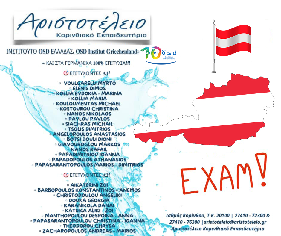 «ΑΡΙΣΤΟΤΕΛΕΙΟ ΚΟΡΙΝΘΙΑΚΟ ΕΚΠΑΙΔΕΥΤΗΡΙΟ – Ινστιτούτο 𝐎̈𝐒𝐃 Ελλάδας, 𝐎̈𝐒𝐃 𝐈𝐧𝐬𝐭𝐢𝐭𝐮𝐭 𝐆𝐫𝐢𝐞𝐜𝐡𝐞𝐧𝐥𝐚𝐧𝐝» ~ Και στα Γερμανικά 𝟏𝟎𝟎% ΕΠΙΤΥΧΙΑ!!! Σήμερα, Δευτέρα 8 Ιουλίου 2024, αναρτήθηκαν τα αποτελέσματα της εξεταστικής περιόδου Μαΐου – Ιουνίου 2024 των Εξετάσεων Γερμανικών του Ινστιτούτου 𝐎̈𝐒𝐃 Ελλάδας, 𝐎̈𝐒𝐃 𝐈𝐧𝐬𝐭𝐢𝐭𝐮𝐭 𝐆𝐫𝐢𝐞𝐜𝐡𝐞𝐧𝐥𝐚𝐧𝐝! ~ Θερμά Συγχαρητήρια σε όλους τους μαθητές μας, οι οποίοι ΑΡΙΣΤΕΥΣΑΝ!!! Επιτυχόντες 𝐀𝟏!VOULGARELLI MYRTOELENIS […]