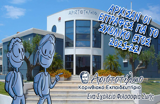 ΠΛΗΡΟΦΟΡΙΕΣ – ΕΓΓΡΑΦΕΣ ΣΤΗΝ ΓΡΑΜΜΑΤΕΙΑ ΤΟΥ ΕΚΠΑΙΔΕΥΤΗΡΙΟΥΤΗΛ: 2741072300 – 2741076300Email: aristoteleio@aristoteleio.gr ΑΝΑΚΟΙΝΩΣΗ ΕΝΗΜΕΡΩΝΟΥΜΕ ΤΟΥΣ ΕΝΔΙΑΦΕΡΟΜΕΝΟΥΣ ΓΟΝΕΙΣ ΚΑΙ ΚΗΔΕΜΟΝΕΣ ΟΤΙ ΑΡΧΙΣΑΝ ΟΙ ΕΓΓΡΑΦΕΣ ΓΙΑ ΤΗΝ ΕΙΣΑΓΩΓΗ ΝΕΩΝ ΜΑΘΗΤΩΝ ΚΑΙ ΜΑΘΗΤΡΙΩΝ ΝΗΠΙΑΓΩΓΕΙΟΥ – ΔΗΜΟΤΙΚΟΥ – ΓΥΜΝΑΣΙΟΥ – ΛΥΚΕΙΟΥ ΓΙΑ ΤΟ ΣΧΟΛΙΚΟ ΕΤΟΣ 2021-2022. ΟΙ ΘΕΣΕΙΣ ΕΙΝΑΙ ΠΕΡΙΟΡΙΣΜΕΝΕΣ